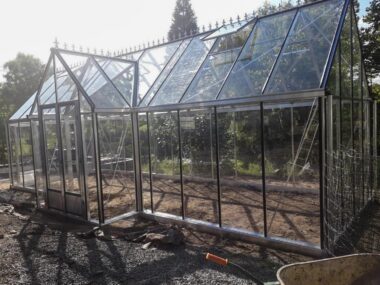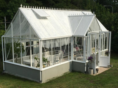 Voit valita kasvihuoneen katteeksi joko polykarbonaatin tai lasin. Vakiona on vahva 8 mm:n polykarbonaatti, mutta voit valita, että katto on vahvaa 8 mm:n polykarbonaattia ja seinät 4 mm:n karkaistua lasia. Polykarbonaatin No-Drop-pinnoite estää kondensaation ja parantaa läpinäkyvyyttä. Katon polykarbonaatti suojaa paahtavalta kesäauringolta ja takaa tasaisemman valon ja lämpötilan sisällä.