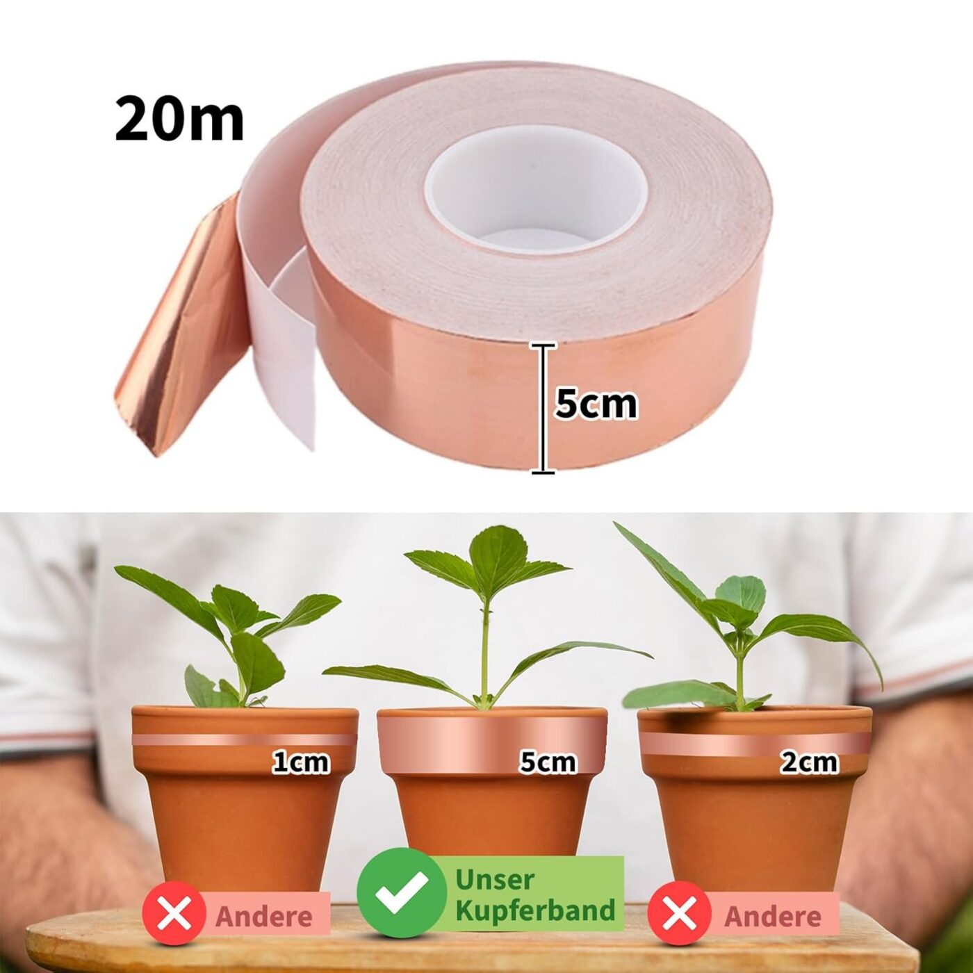 Kuparinauha pitää etanat ja nilviäiset loitolla kasveistasi. Voit helposti liimata tämän kuparinauhan kukkaruukkuihin, kasviastioihin, korkeisiin penkkeihin ja muihin kohteisiin. Yksikään nälkäinen hyönteinen ei pääse kuparin yli. Puhdas ja myrkytön ratkaisu puutarhaan.