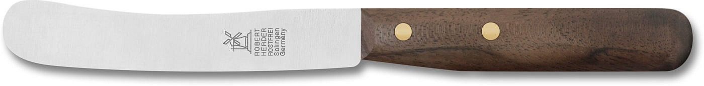 Vanha saksalainen pöytäliina pöytäjuoksuineen on suunniteltu historiallisesti maatilakäyttöön 140 vuotta sitten, ja se on säilynyt muuttumattomana tähän päivään asti. Leveä, pyöreäkärkinen terä soveltuu yhtä hyvin leivän ja tukevan savumakkaran viipalointiin kuin voilla leikkaamiseen. Leiväsakset ja sämpylät voidaan leikata puhtaasti kahtia murenematta, ja voita voidaan helposti voidella, vaikka se olisi kylmää ja kovaa. Loistava suosikki niille, joilla on aamulla kiire syömään eikä ole aikaa leivän leikkaamiseen tylpällä veitsellä. Teräsosa on kiillotettu, ja kahvoja on saatavana eri puulajeista, mikä tekee niistä erittäin ylellisen näköisiä.