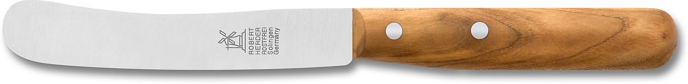 Vanha saksalainen pöytäliina pöytäjuoksuineen on suunniteltu historiallisesti maatilakäyttöön 140 vuotta sitten, ja se on säilynyt muuttumattomana tähän päivään asti. Leveä, pyöreäkärkinen terä soveltuu yhtä hyvin leivän ja tukevan savumakkaran viipalointiin kuin voilla leikkaamiseen. Leiväsakset ja sämpylät voidaan leikata puhtaasti kahtia murenematta, ja voita voidaan helposti voidella, vaikka se olisi kylmää ja kovaa. Loistava suosikki niille, joilla on aamulla kiire syömään eikä ole aikaa leivän leikkaamiseen tylpällä veitsellä. Teräsosa on kiillotettu, ja kahvoja on saatavana eri puulajeista, mikä tekee niistä erittäin ylellisen näköisiä.