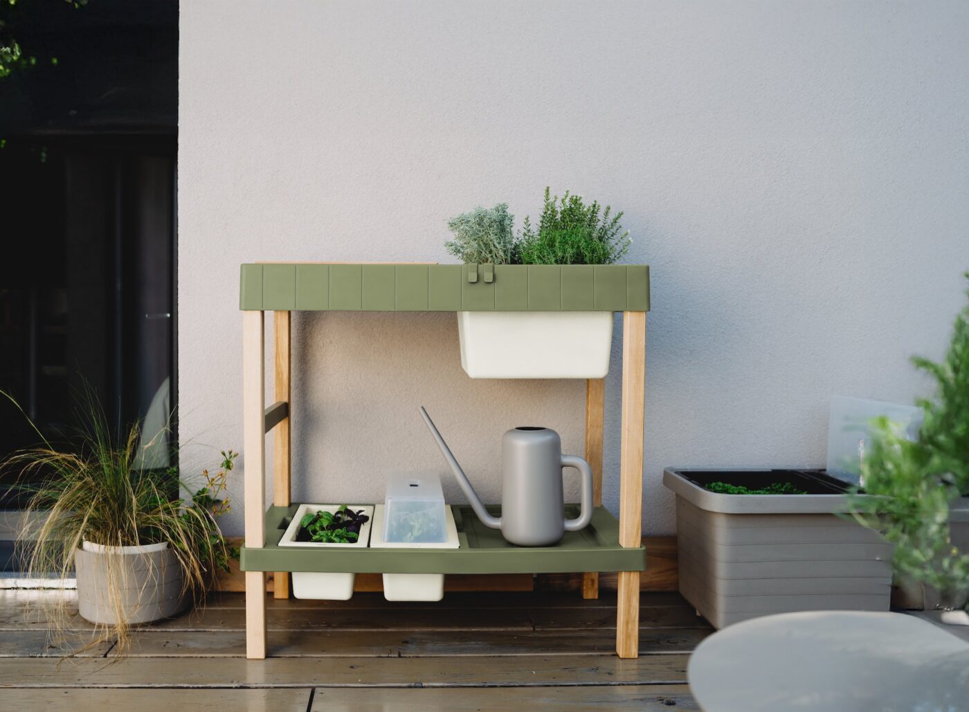 Planter on monikäyttöinen työpöytä, jossa on säilytystilaa ja joka tuo kasvien kasvattamisen ilon parvekkeelle, terassille tai pieneen puutarhaan. Se on suunniteltu muuttamaan mikä tahansa tila vihreäksi keidas – kasvatatpa sitten yrttejä tai salaatteja, etsit näppärää ratkaisua grillausta varten tai nautit parvekkeella istumisesta.