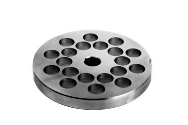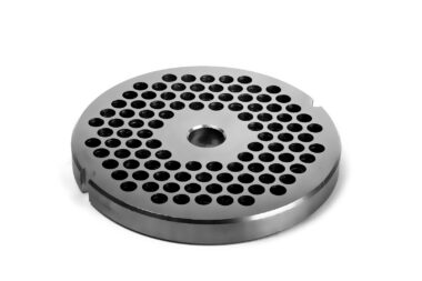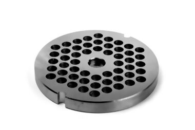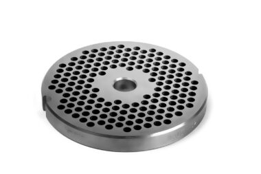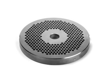 Ruostumattomasta teräksestä valmistettu seula TC-32, jossa on 8 mm:n reiät.