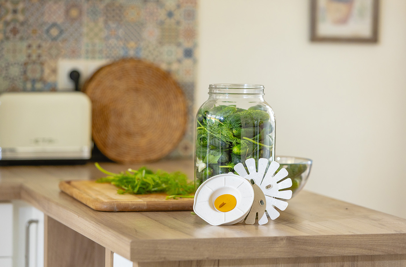 Maitsed, mis küpsevad aeglaselt otse kodus. Suur käärituskaas muudab tavalise purgi kohaks, kus valmivad krõmpsuvad marineeritud kurgid, aromaatne kimchi, vürtsikas hapukapsas ja õrnalt vahuveiniga limonaad. Täida lihtsalt purk, pane kaas peale ja lase loodusel oma võlujõudu teha.