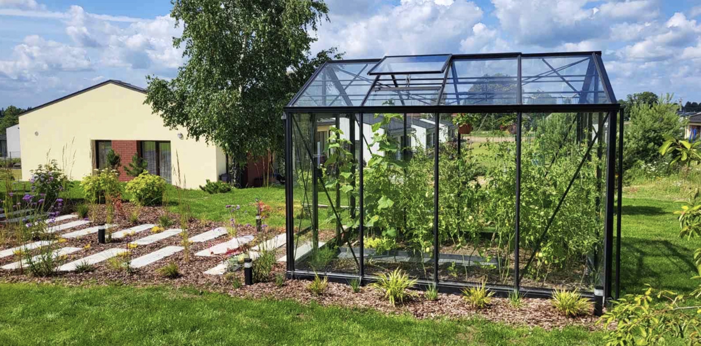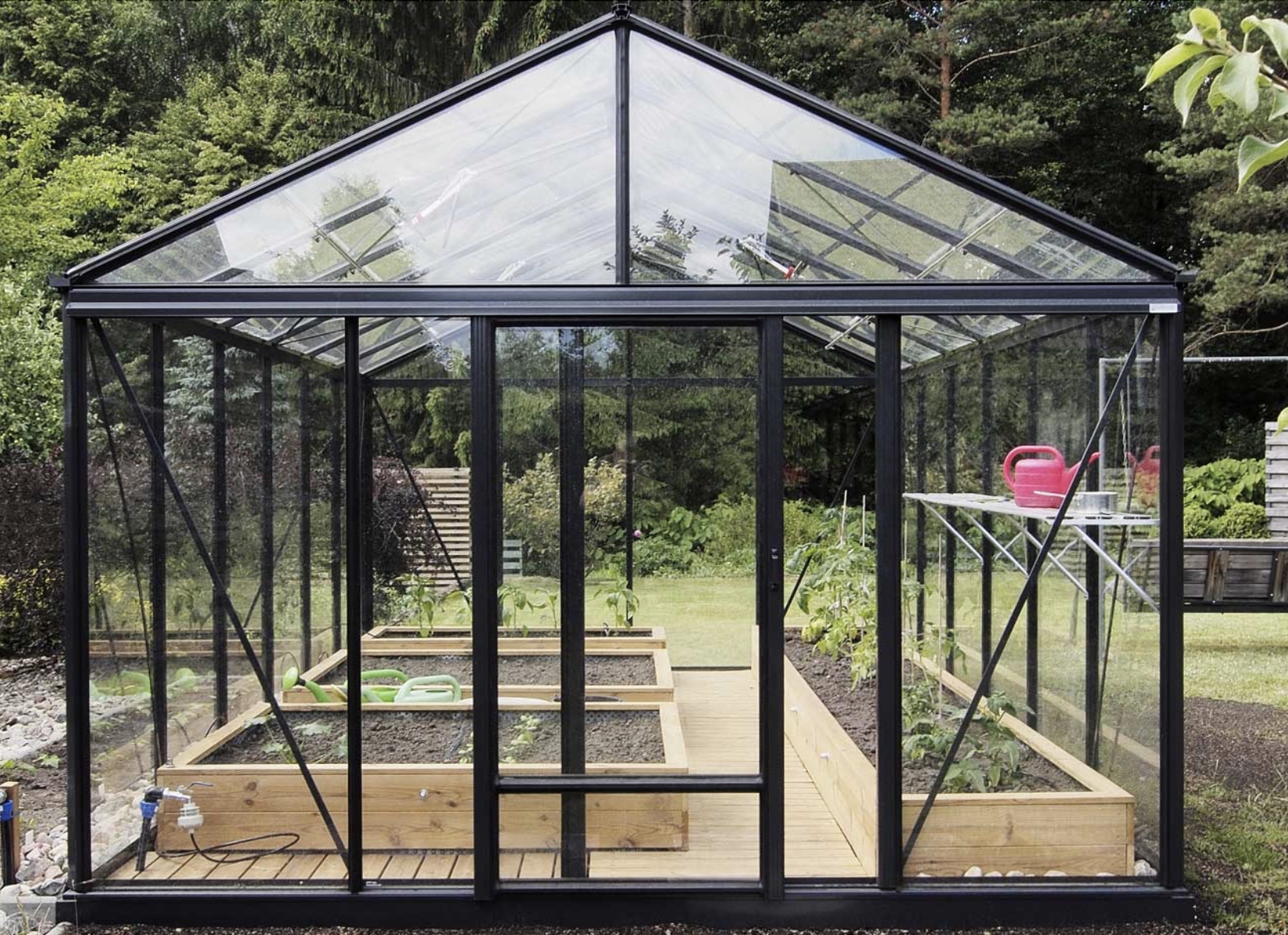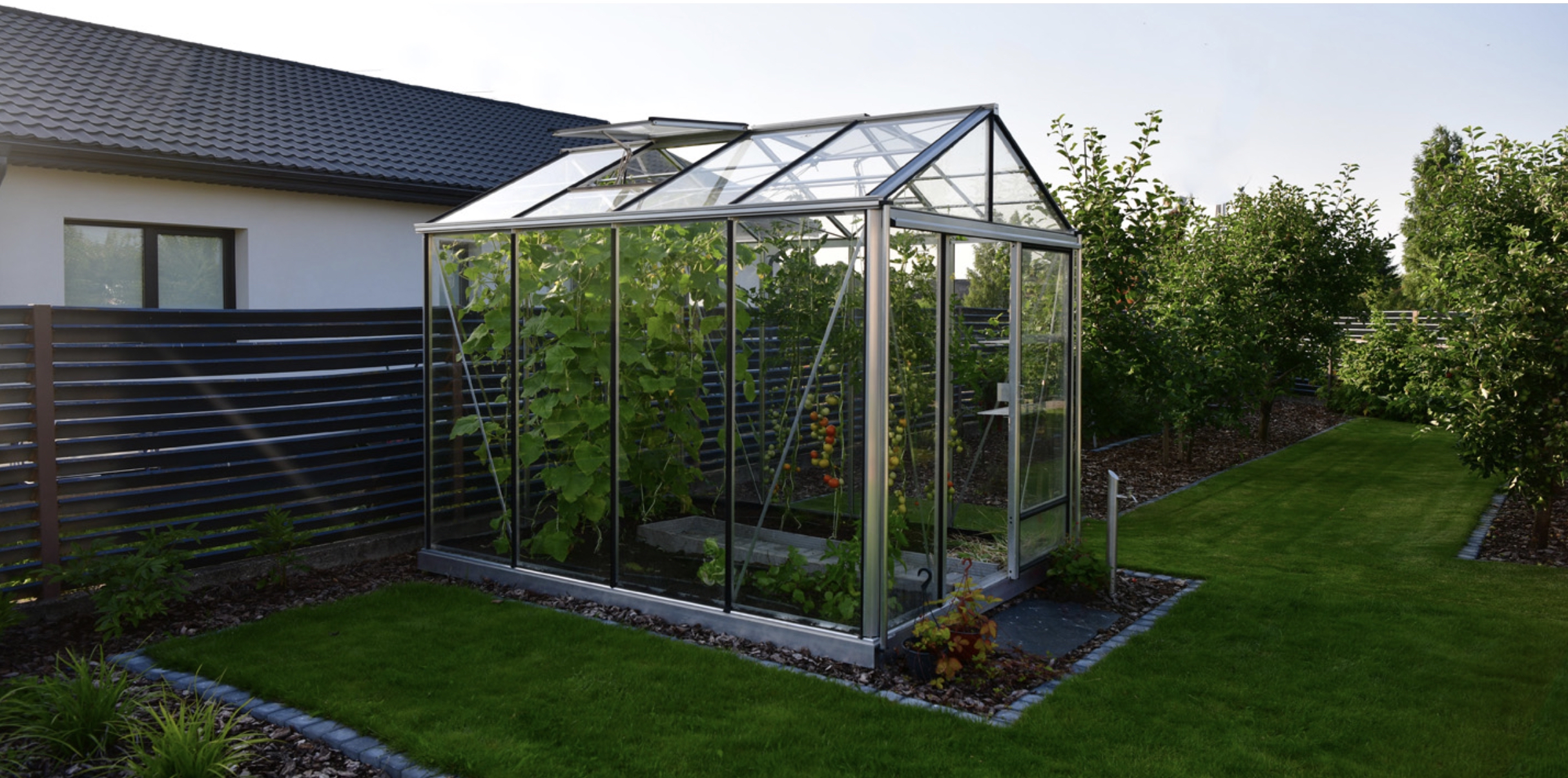 Kasvuhoone katteks on juba standardis tugev otstest suletav 10mm polükarbonaat. Polükarbonaadi sisepinnal olev No-Drop kate takistab kondensvee tekkimise ja tagab parema läbipaistvuse kui kõikidel teistel kasvuhoonetel.