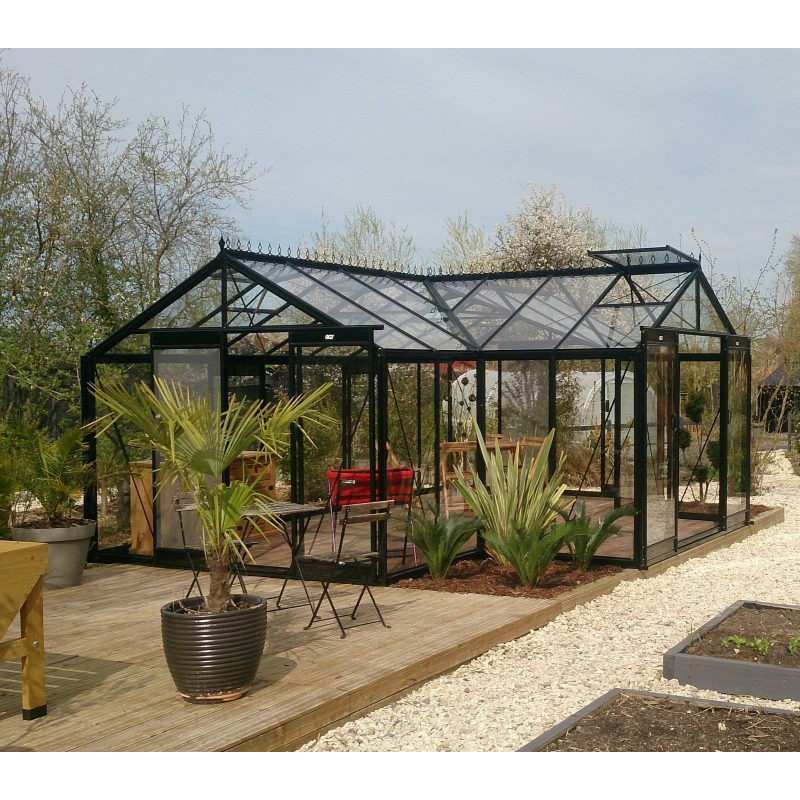 Katuseharja kõrgus koos alusraamiga on 259cm ning külgseina kõrgus koos alusraamiga on 179 cm. Suured katuseluugid tagavad hea õhuvahetuse. Kasvuhoonega on kaasas ka vihmaveetorud. Klaasipinna kogupindala on 55,90m2.